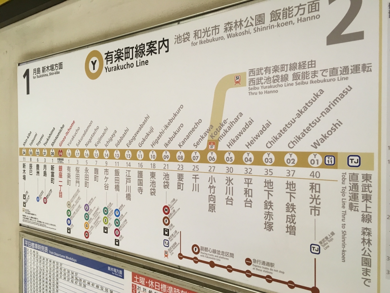 新木場や豊洲などの東側の場所から池袋などにもアクセス出来る地下鉄。運行している本数も多く便利な路線です。乗り換えはあまり便利な駅はありませんが、特に銀座一丁目駅はホームまですぐにアクセス出来る上に、銀座松屋などからも近くその上すいているので使いやすいです。