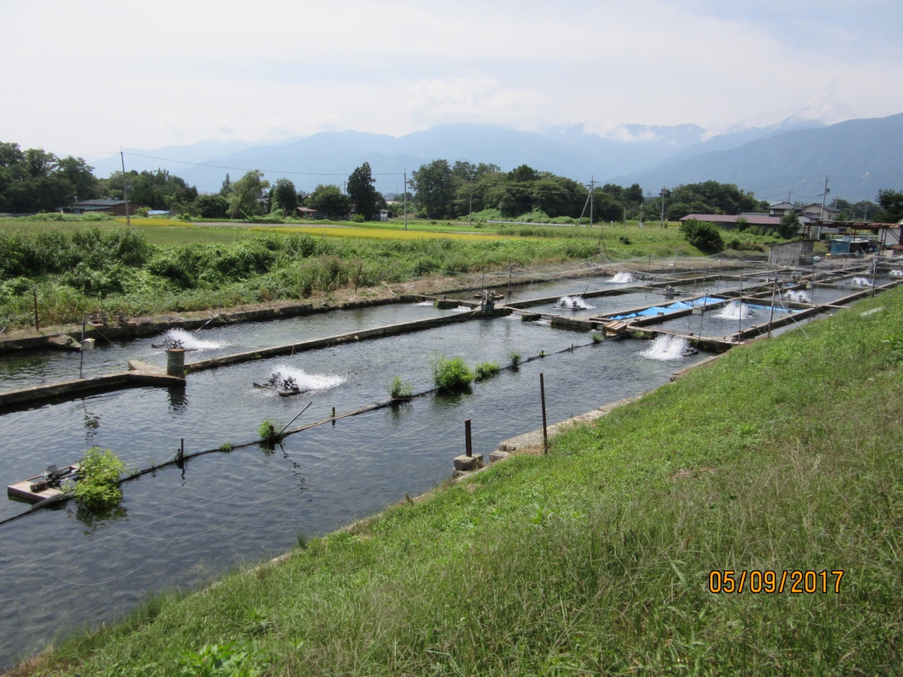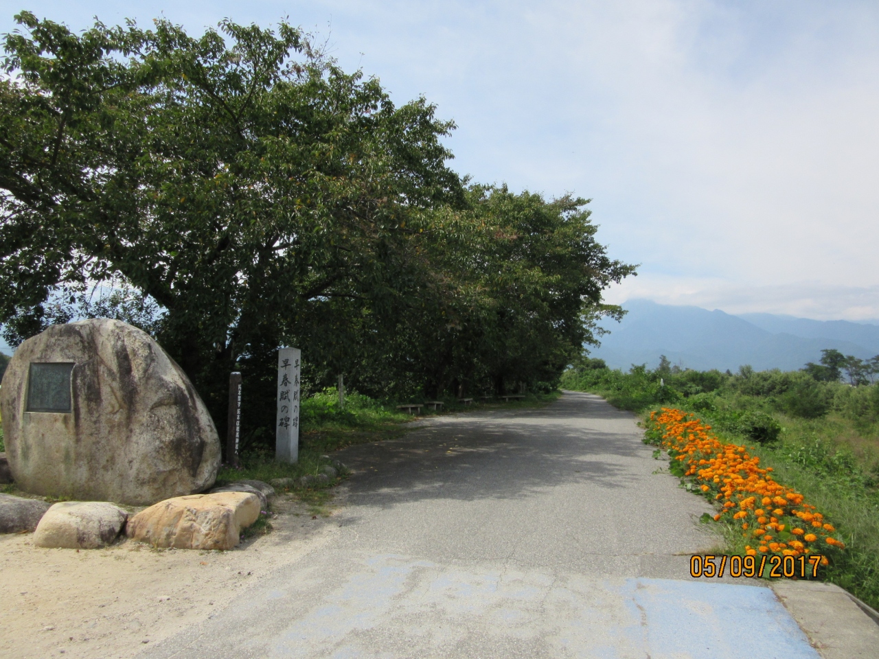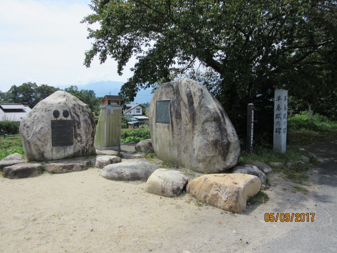 穂高駅から【等々力家・東光寺】を見学し、【大王わさび農場】へ向かう途中少し寄り道をして穂高川の土手にある【早春賦歌碑】を見学した。子供の頃に聞いた【春は名のみの風の寒さや...】の懐かしい唱歌を口ずさみながら、大きな魚の養魚場を過ぎ左に土手を上るとすぐに見えてきた。のどかな穂高川沿いの遊歩道に建ち、遠くに山並みが見える素晴らしいロケーションであった。作曲者と作詞者のレリーフが描かれた碑と歌詞が刻まれていた。昭和59年4月の建立でオルゴールがすぐ横にありスイッチを押すとメロディーが流れてきた。時折自転車で見学に来る観光客がいたがほとんど無人状態だったのでオルゴールを何度も押して懐かしいメロディーを口ずさんだ。
