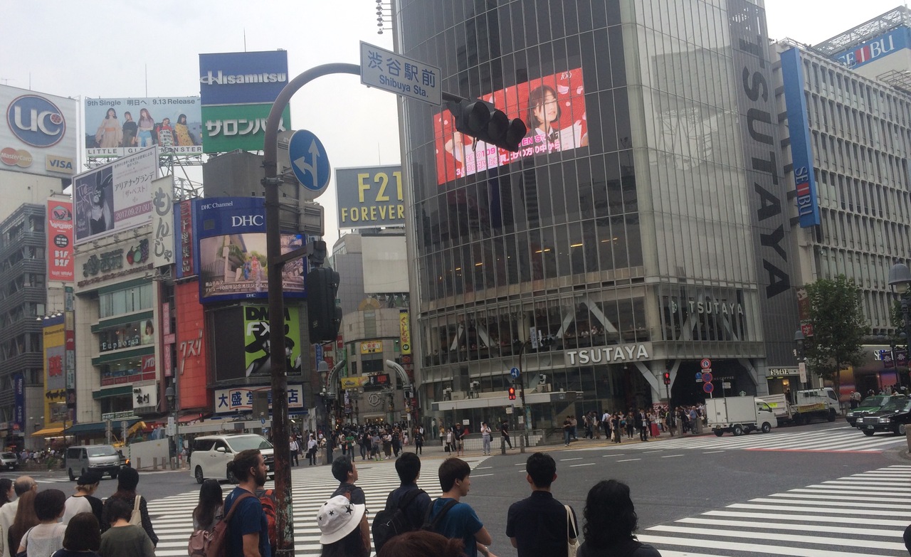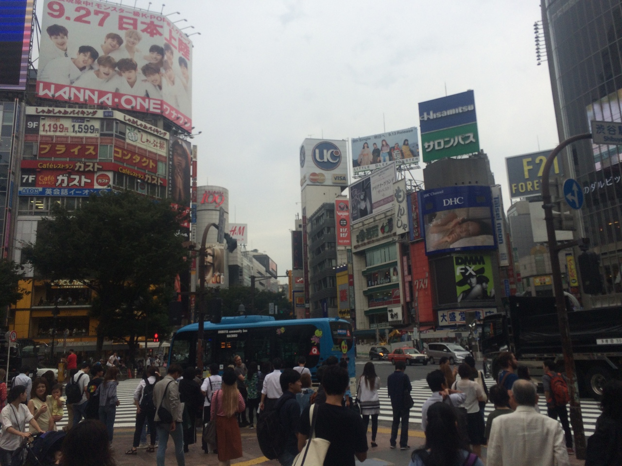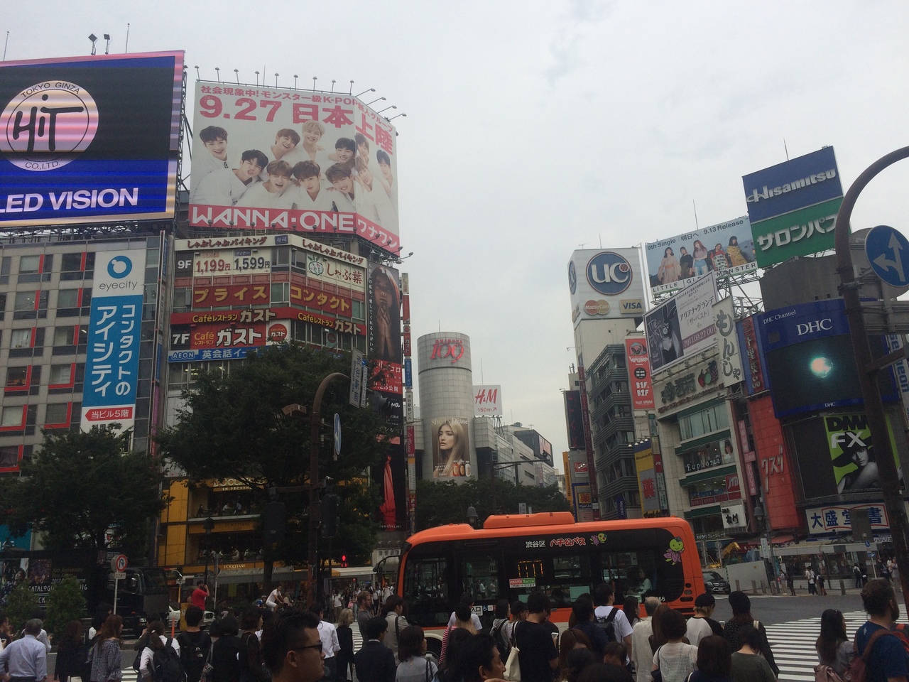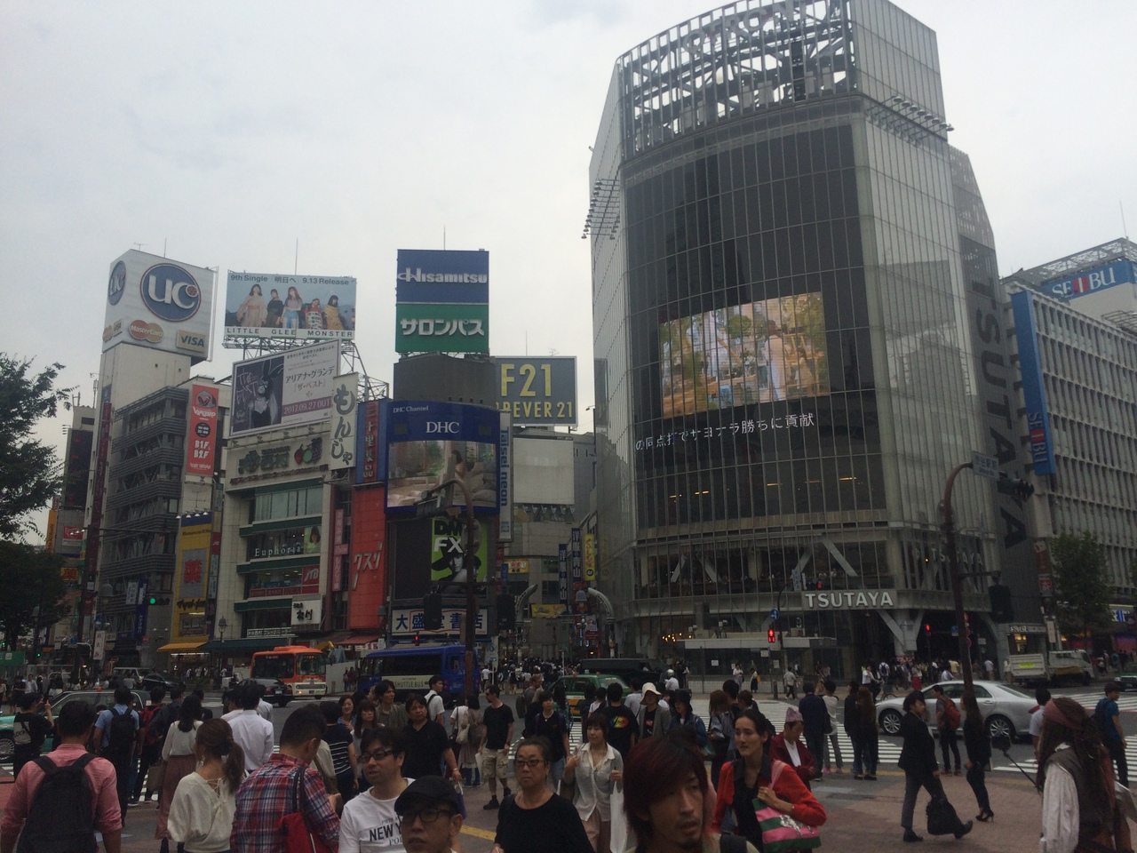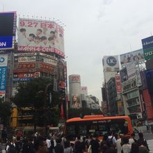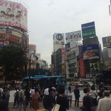 渋谷スクランブル交差点に隣接していて物凄い人がいました。センター街には見上げるような高いビルはなく昼と夜の雰囲気が異なり夜でも明るいネオンがついています。センター街の入り口のビルにはモニターがありCM等が流れています。
