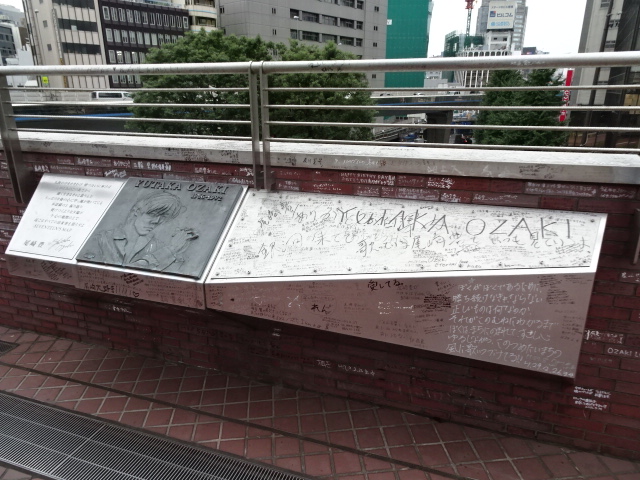 JR渋谷駅の東口から歩いて5分くらいと近いです。歩道橋を渡った渋谷クロスタワーのテラスの端っこ、渋谷駅側にモニュメントがあります。尾崎豊のファンたちが書き込んだ落書きがたくさん書かれていました。ファンなら行ってみてもよいでしょう。