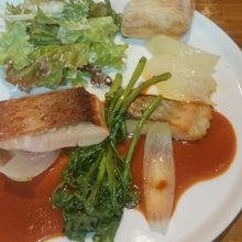 魚はサーモンにエビのソース。これがとてもおいしかったです。ソースは