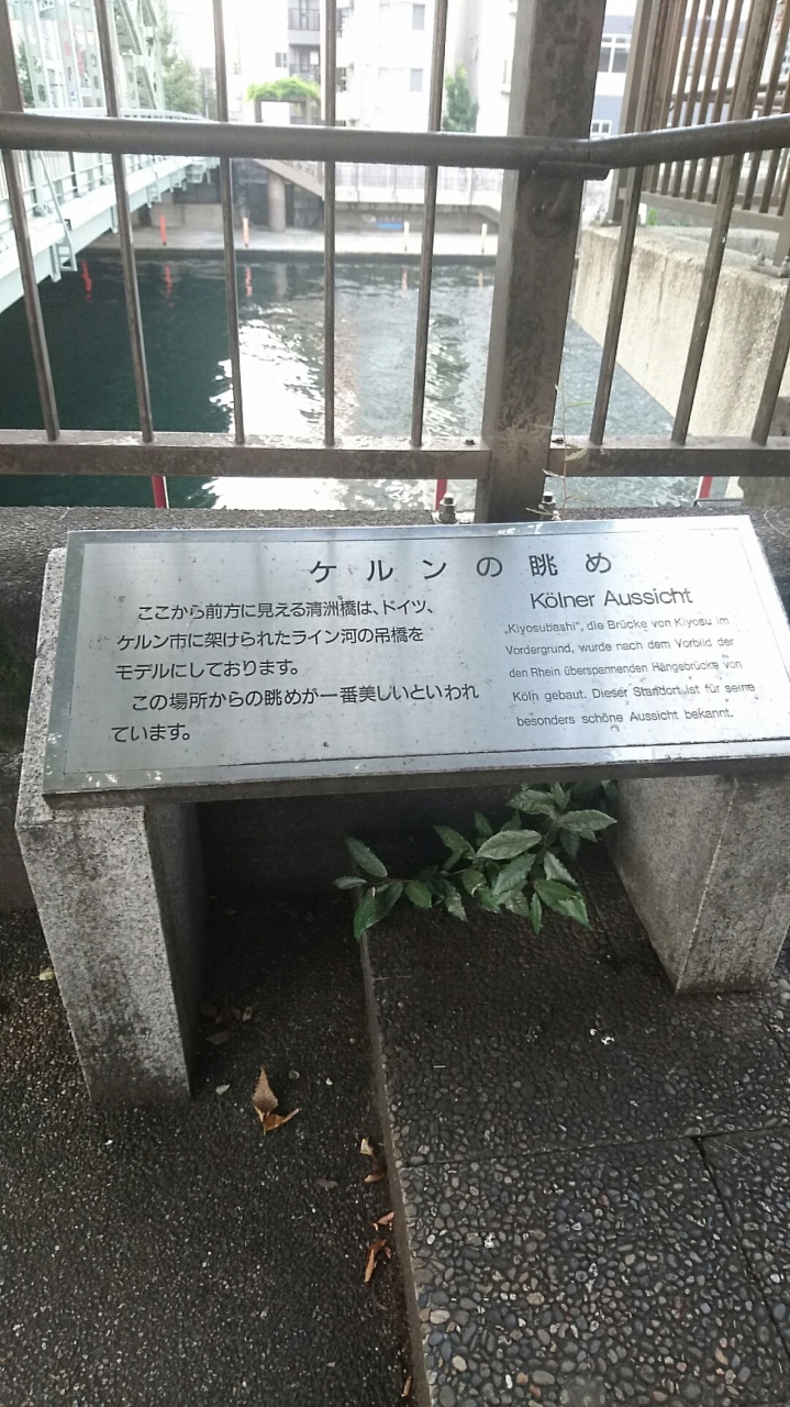 小名木川から隅田川に合流する際の最後の橋が萬年橋で、そこから見る清洲橋の眺めがまさにドイツのケルンの眺めのようだということで説明板が置かれていました。ケルンを知らないので何とも言えませんが、確かに萬年橋から見る清洲橋は美しかったです。