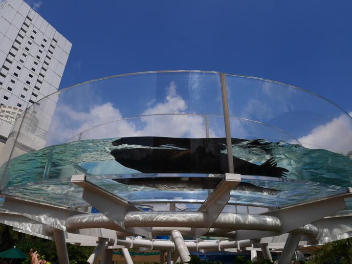 中も大混雑でしたが、空飛ぶペンギンも観れた上、なによりペリカンの餌やりが楽しかった!