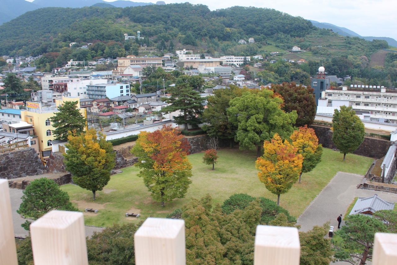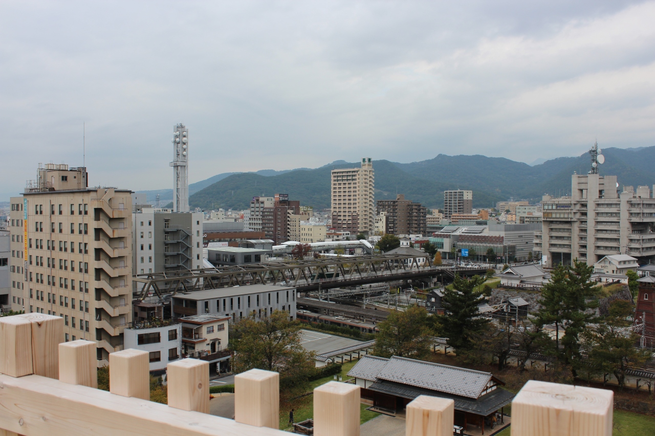 甲府といえば武田信玄を思い出すので、このお城は武田信玄によって作られたお城だと思ったら、違いました。武田家の滅亡後、豊臣秀吉が徳川家康を牽制するために浅野長政・幸長に築城させたもので、江戸時代には代々の徳川一門や柳沢氏の居城だったそうです。天守台から望む甲府の街とその周囲を囲む雄大な山々の眺めは大変素晴らしかったです。甲府駅はその昔、城内だったところにあり、長い時の流れを感じました。