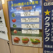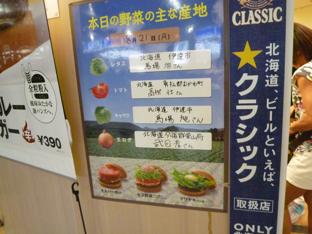 道産野菜を使ったハンバーガーもちょっと魅力的。ビールがあるのも良いですねえ。