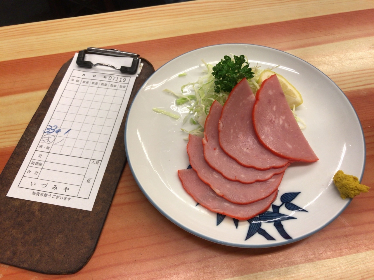 昔ながらハム、目玉焼きなんかをつまみながらホッピーで