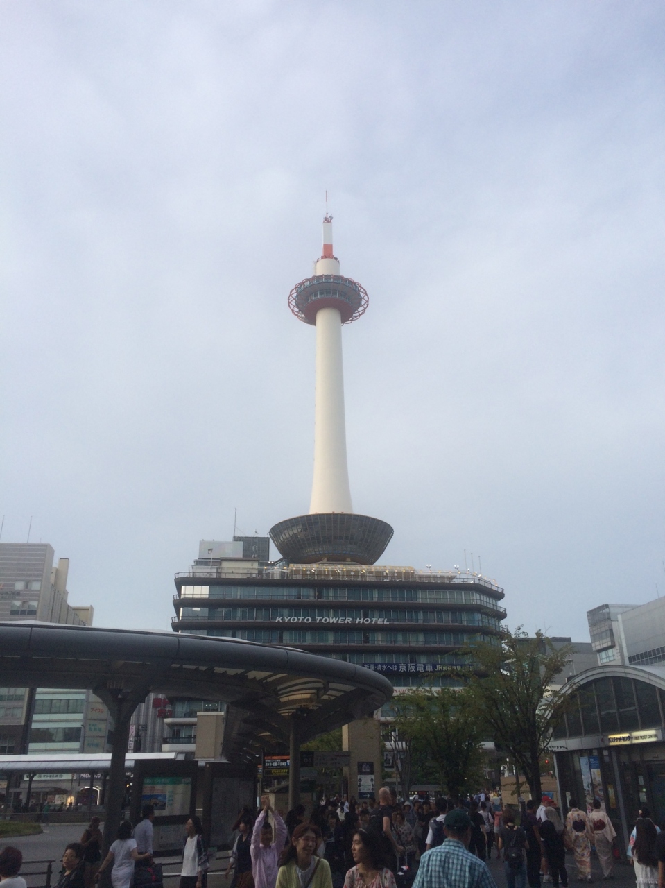 京都駅前に聳え立つ周辺では高い建物で遠くからでも目印になるので歩いて京都駅に行くのには便利でした。下から鉄柱のようなタワーが建っているのではなくビルの上に建ってあるので珍しい建物でした。上は展望スペースになっています。