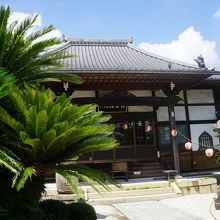 本堂前の両側に植えられた蘇鉄の緑が濃くて美しいです