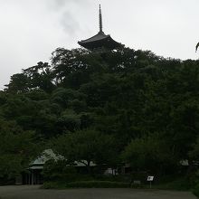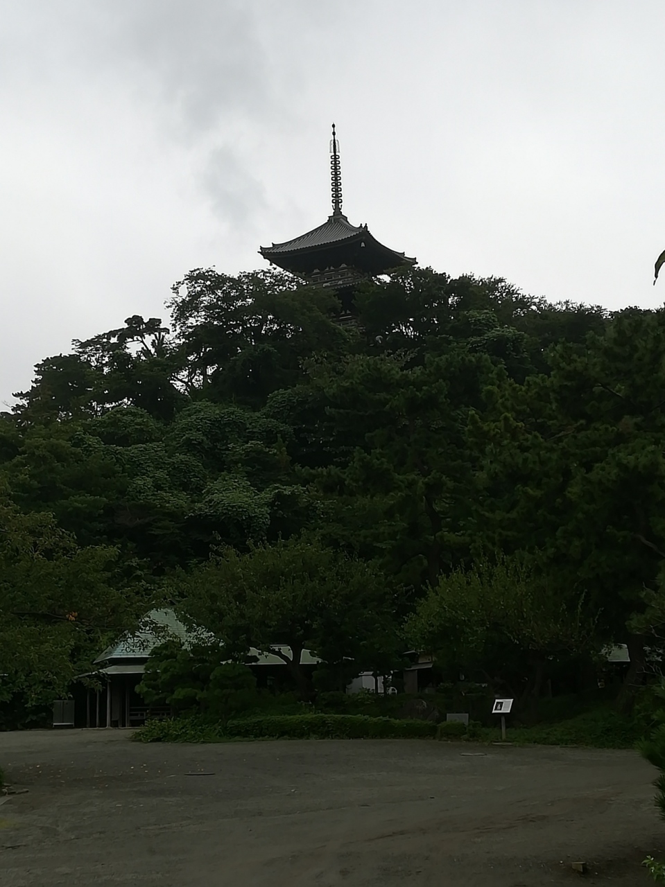 三溪園に入ってから少し進むと左正面に立派な塔が見えました。あいにくの空模様の為、上手く写真に収めることができませんでしたが、庭園と一体となって一枚の絵になる風景です。近くで見たかったのですが、塔までの道が登れないようでした。