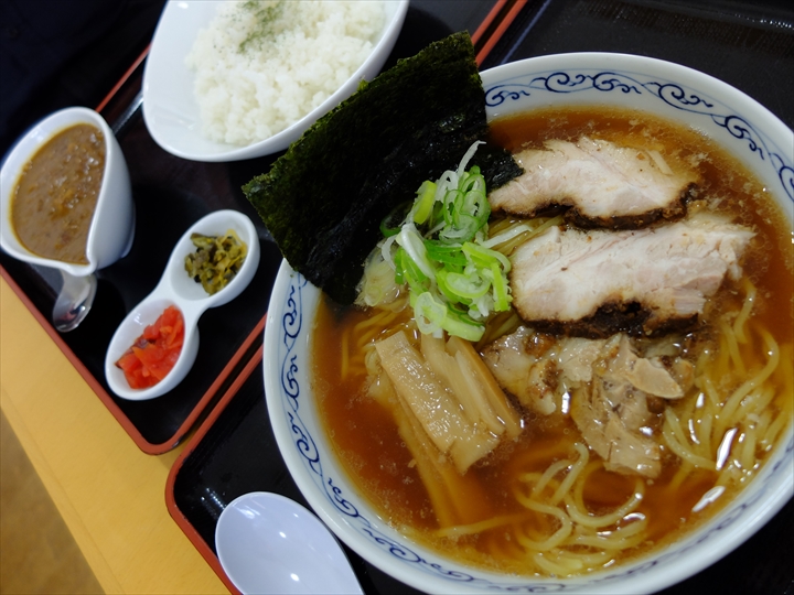今にも雨が降りそうな肌寒い日だったので、≪昔ながらの醤油ラーメン≫とビーフカレーにして、名物だという西瓜ソフトクリームは取りやめ。