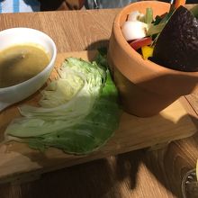 女子率のすごく高いお店で、私が訪れたときは約7割くらいは女性のお客さんが来ていたんじゃないかというくらい、女性人気の高いお店でした。バーニャカウダのお野菜が、植木鉢に入っている風だったりたしかにインスタにも映えそうで女性受けしそうなメニューです。ワイン食堂ではありますが、意外とお酒は普通というか、カクテル系はあんまりお酒が強くなかったです。