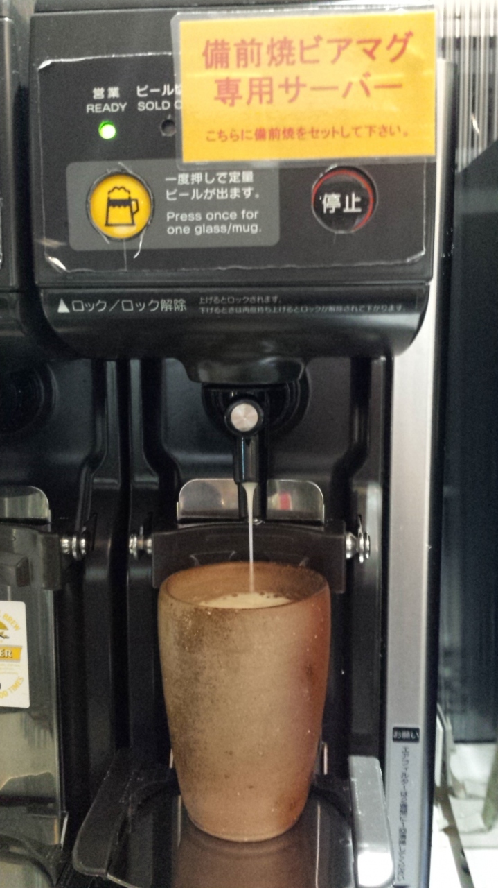 岡山空港のANAラウンジでは、備前焼のビアマグで頂く事ができます。