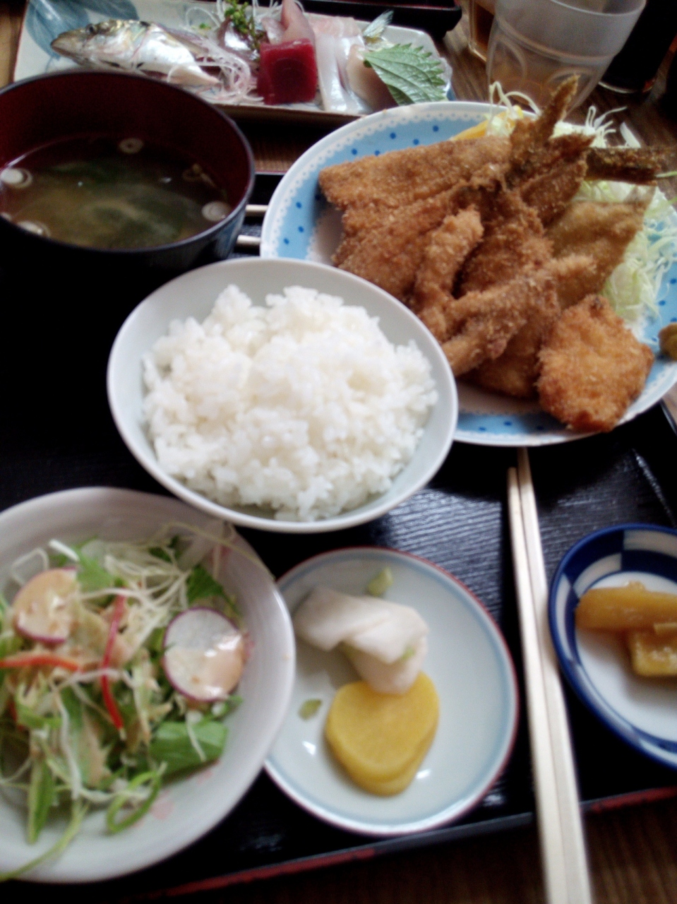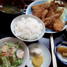 フライ定食、刺し身定食、串かつ定食、金目鯛定食。