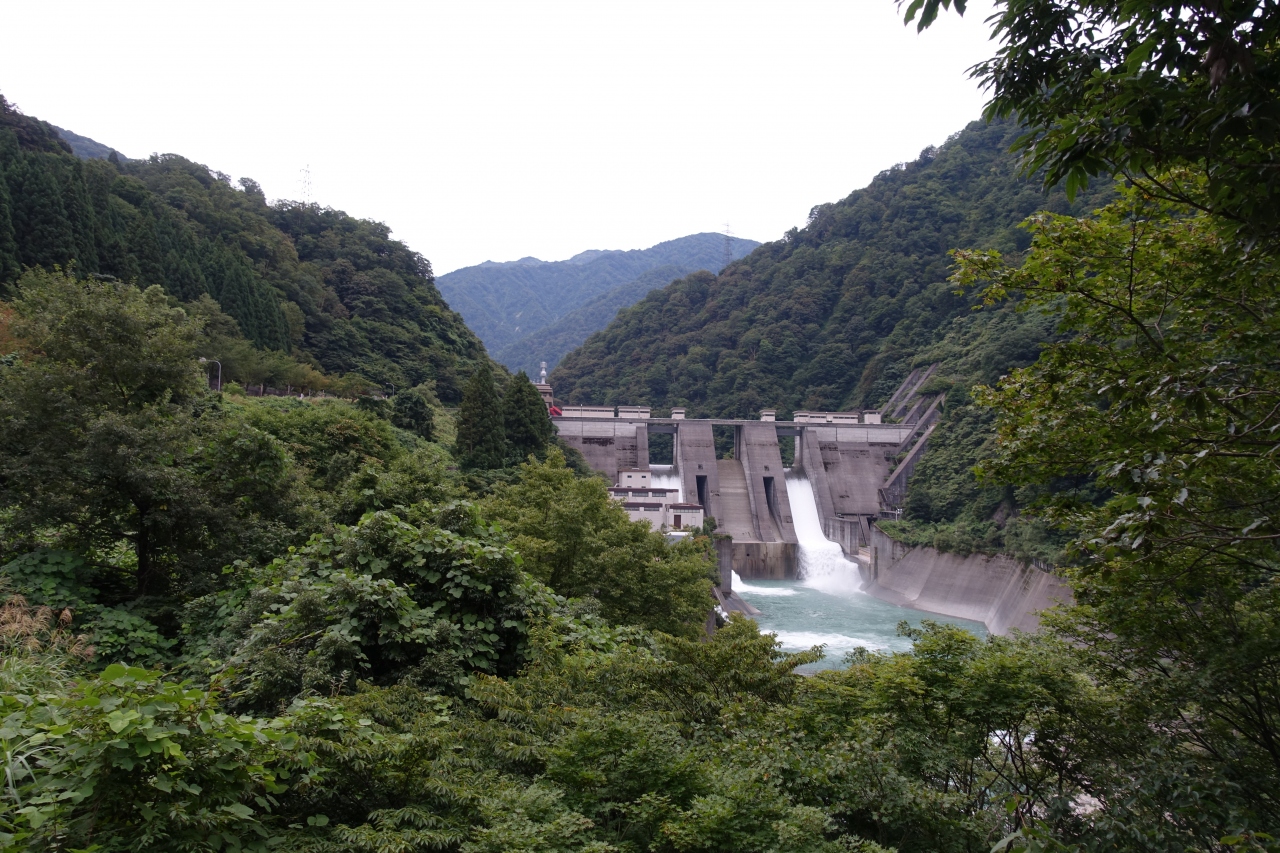 ダムというと多くは山奥の交通の便が悪いところにありますが、この宇奈月ダムは黒部峡谷鉄道の宇奈月駅から、歩いて15分ほどの所にあります。ダムまで行かなくとも、駅から歩いて5分ほどの所にダム展望台があり、ここではダムを正面から見ることができました。