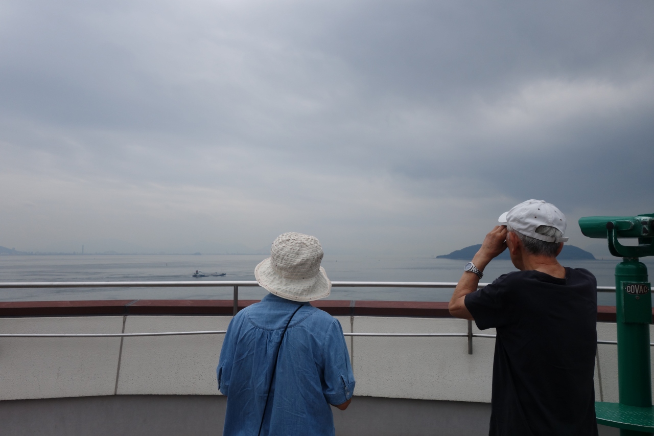 建物の屋上に展望台があり、お盆は双眼鏡が無料でしたが、持参した双眼鏡も使い勝手がよくお持ちの方は持って行くといいかも。セルフタイマーで写真を撮る台も設置してあるそうです。