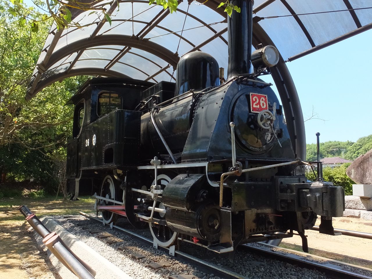 宇佐神宮の参道の脇に鎮座している古い小さな蒸気機関車。ドイツ製の明治時代に輸入された機関車で、国鉄(当時は九州鉄道)で働いたあと、宇佐神宮まで線路のあった大分交通宇佐参宮線で運転された機関車です。もう廃止になってから50年以上たつようです。こんなかわいい機関車で運転していたんですね。