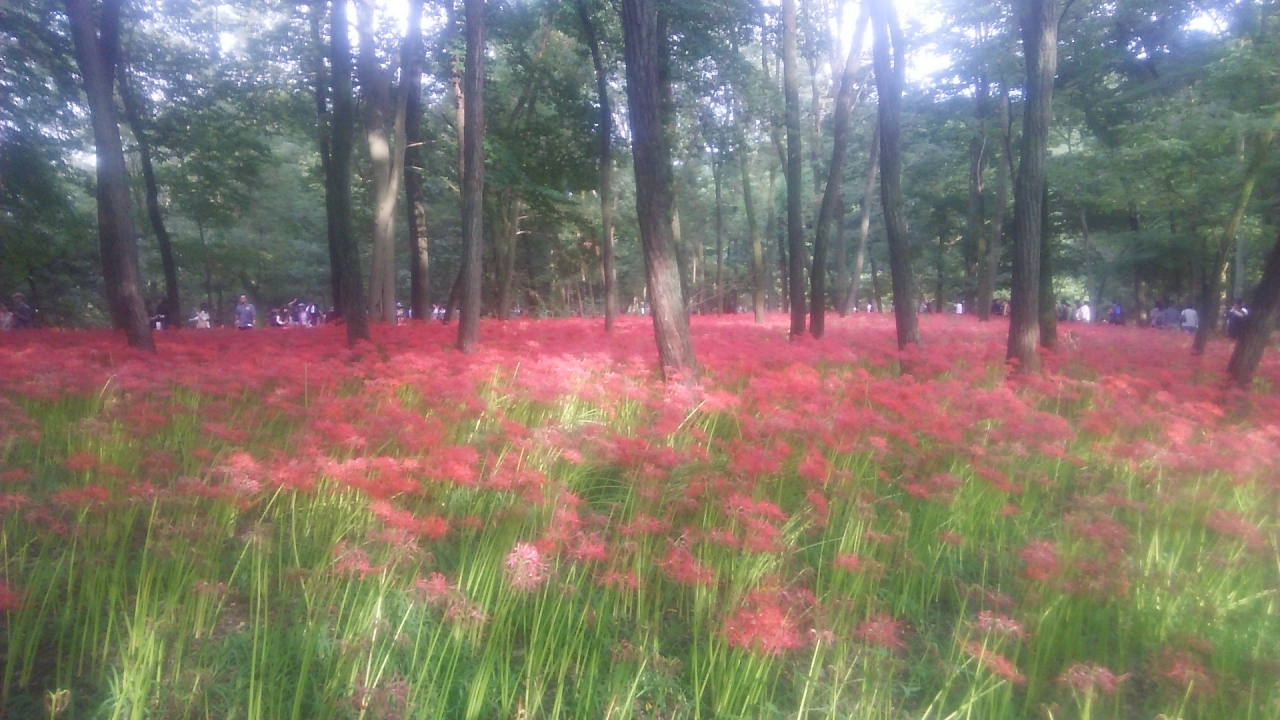 西武池袋線高麗駅から15分位のところにある巾着田で、この時期曼殊沙華まつりを開催。まつりの最中は入場料300円を取られるが、曼殊沙華の咲きっぷりを見れば元がとれる。こういった花のイベントはポスター倒れの場合が多いが、ここはポスター以上の見ごたえがある。