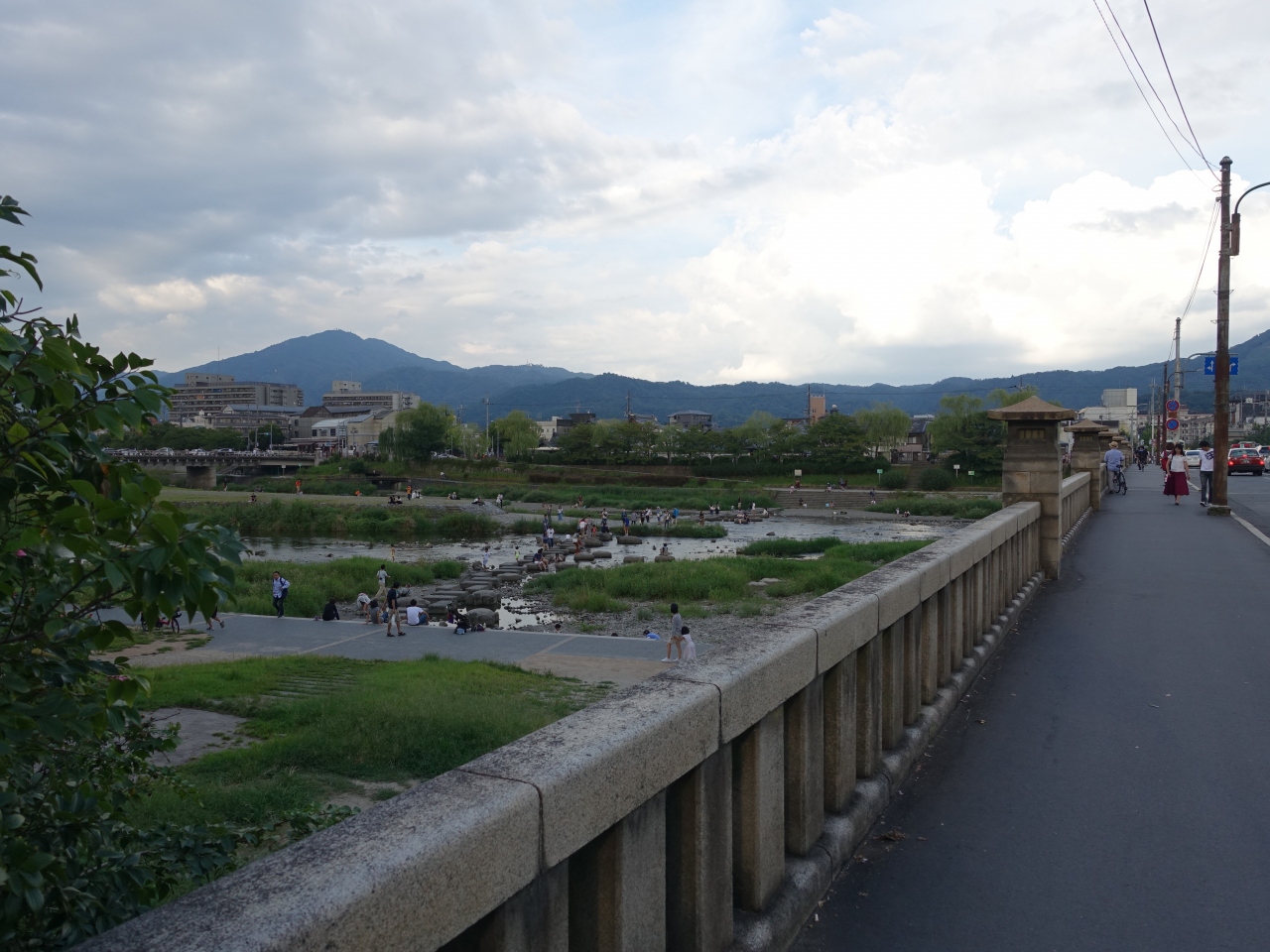 今出川通りが鴨川と交わる部分の橋なので、交通量は多く、橋自体は剛健なコンクリートの橋ですが、ここからの光景は素晴らしいので、是非徒歩で渡りたい橋です。