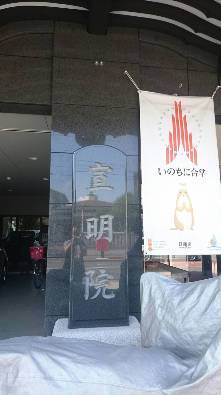 交差点の角に菩薩像を祀っている祠があったのでお参りしました。上行堂と書かれており、宣明院の一角にありました。ここには祀られているのは上行菩薩立像でした。宣明院は日蓮宗の寺院で、上行堂の隣に会館が、その隣には本院がありました。鉄筋コンクリートのビルに入った本院で、とても都会的です。