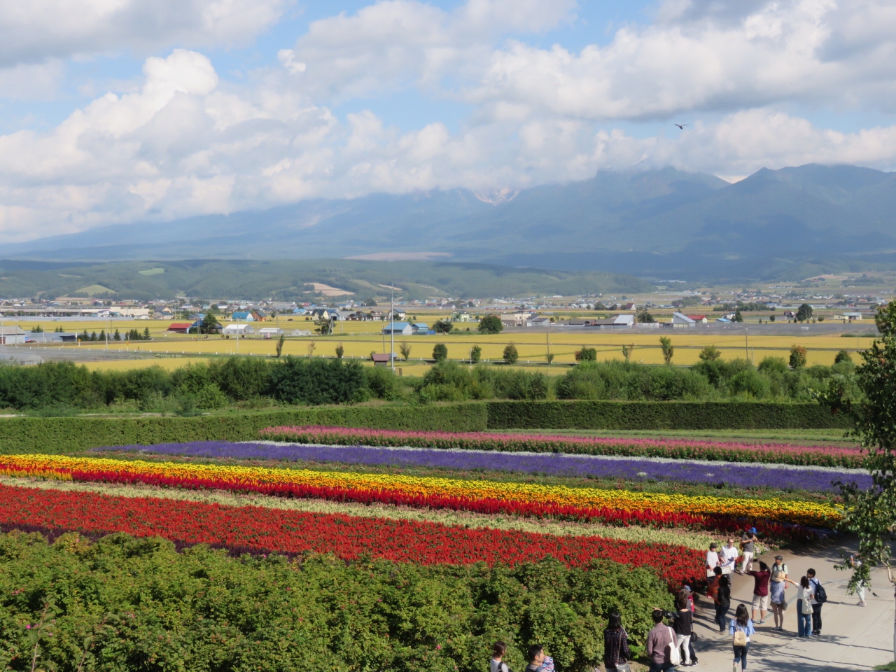 美瑛、富良野を訪れたら是非とも寄りたいところ。色鮮やかな花畑の絶景が楽しめる、絶好の写真スポットです。全景を眺められる展望スポットに軽食を食べられるレストランもあります。人気スポットなのでいつも混み合っています。