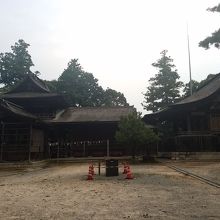 豊栄神社・野田神社を観た後に北側から接近したので裏手から側面を通ることになりましたが、本殿、拝殿と連なって配置されている独特な様式を目の当たりにしました。