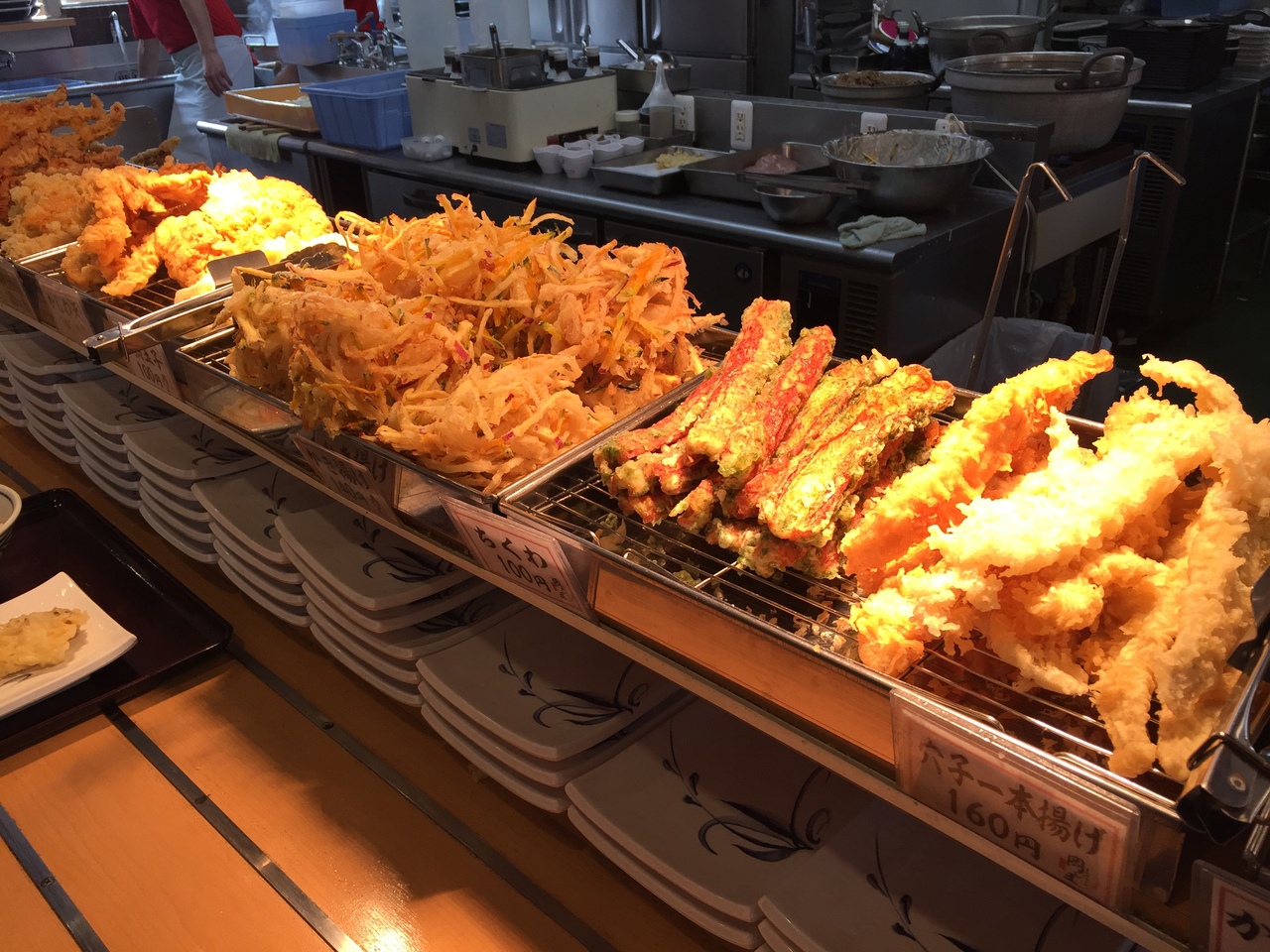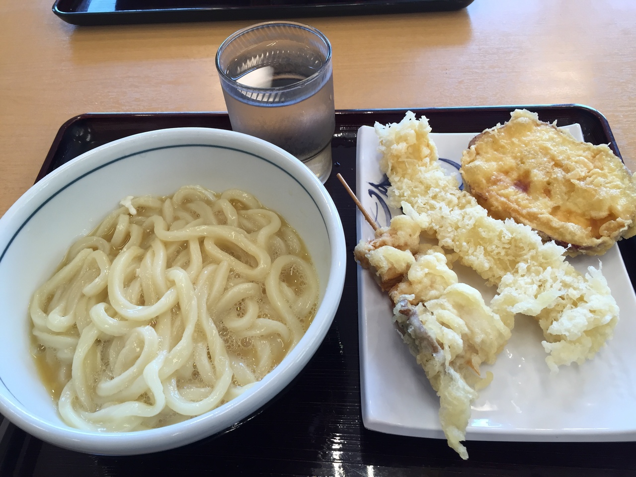 私は、釜玉うどんをオーダーし、天ぷらをいくつかチョイス。 本場の讃岐うどんはやっぱり美味しい!と思いました。