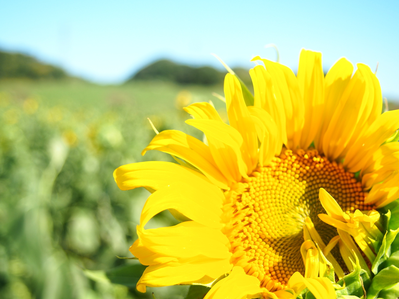 台風の直後だったので、残念ながら少しひまわりが傾いており、花びらが取れているのも多かったですが、ひまわりを楽しむことができました。