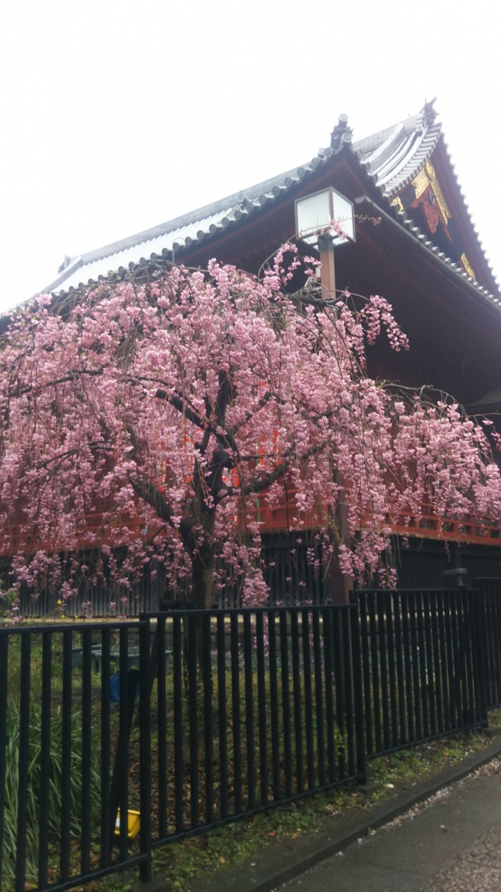 濃いピンクの花の桜や枝垂れ桜などが満開になっています