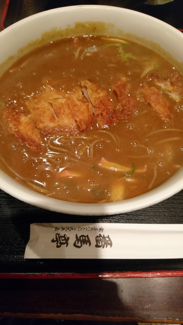 カレーうどんと蕎麦で有名なお店です。開店直後の11時過ぎに行ったのですが、既に行列が出来ていました。カレー蕎麦にトンカツをトッピングしてみました。カレーの辛さが選べますが普通でも結構辛めなので注意が必要です。もちろん普通のうどんや蕎麦もあります。