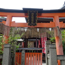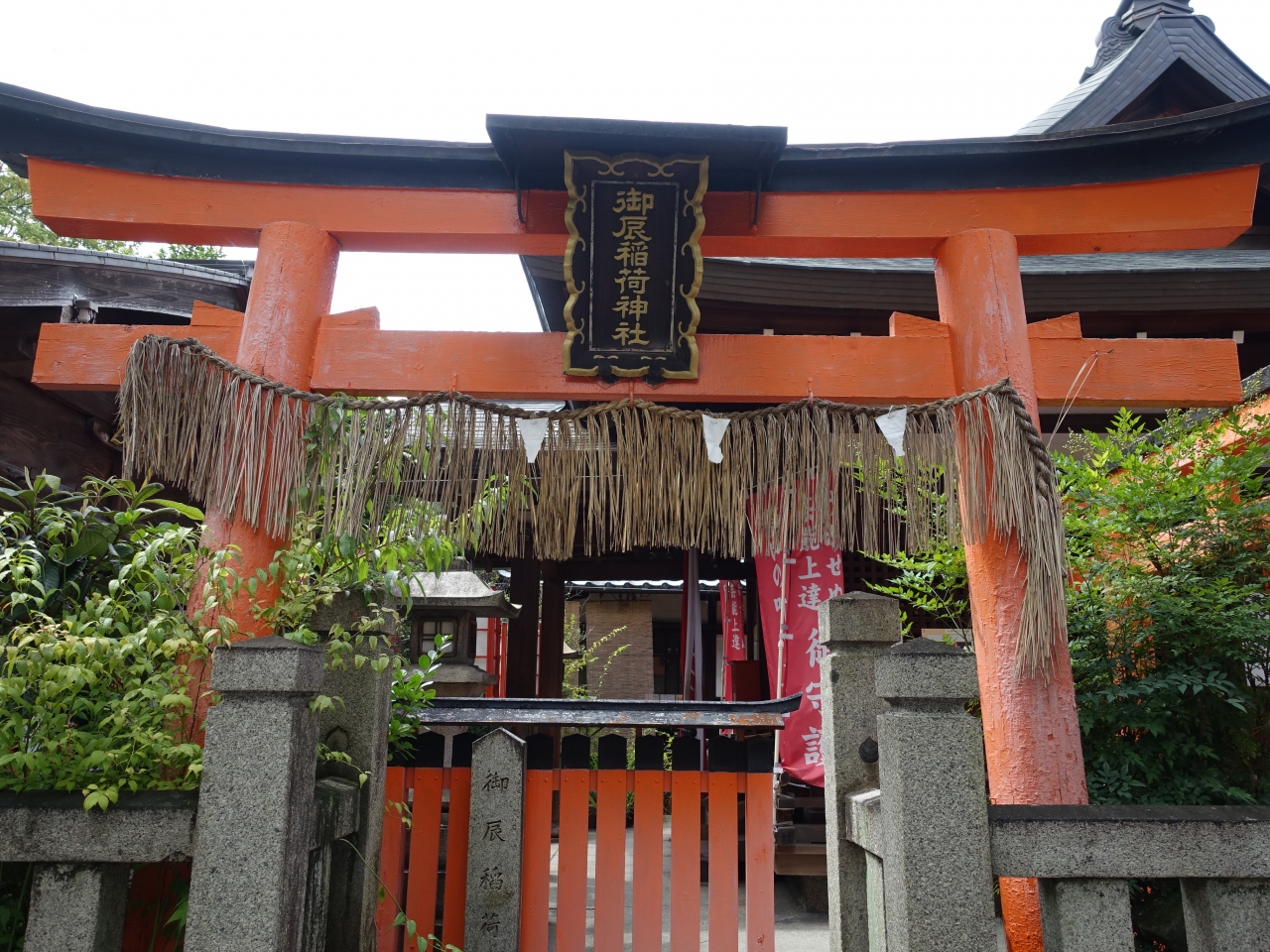 丸田町通りを挟んで平安神宮のすぐ北にある稲荷神社です。境内はとても狭いですが、きつね様がいて、所狭しと赤い鳥居が並んでいます。何でも芸能の神様だという事です。