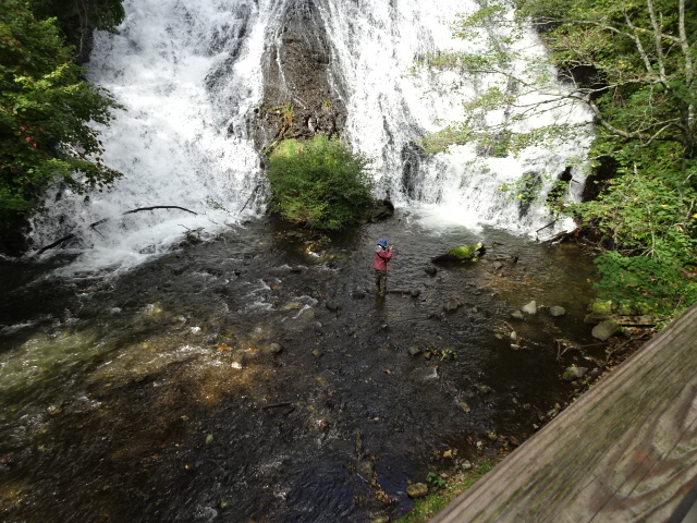 駐車場は有料で500円ですが、滝まで歩いてすぐなので便利です。日光の滝といえばもちろん華厳の滝ですが、湯滝も滝つぼのすぐ目の前が観瀑台ですし、落差も幅もそれなりにあってなかなか迫力がありました。滝つぼで釣りをしている人もいました。