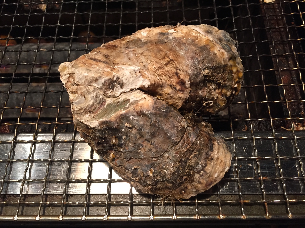 新橋のガード下にあるお店で、店内は下記を網焼きできるテーブルが並んでます。生牡蠣もありますが、コスパを考えたら焼き牡蠣が一番!かなりのボリュームです。軍手をはめて自分で焼くのも楽しいし、秋だと秋刀魚などのお魚もメニューに出てきます。