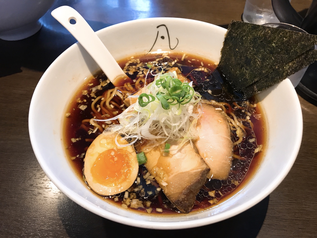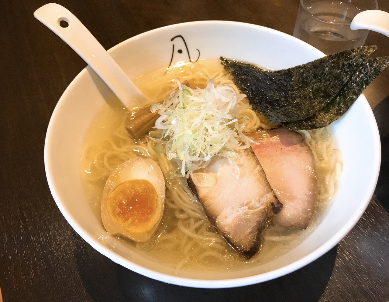 駐車場は店の前に2台ほどと道を挟んでコンビニの裏手に4,5台ほど駐められます。店を入って二組待っていました。長いすに座って待ちます。食券を販売機で先に購入します。「塩ラーメン」は鶏などの出汁が香りと共に旨みがあります。「中華そば鶏と魚だしの塩」はだしに負けないくらいの塩量が入っているのか旨みが塩ラーメンに比べると弱い感じがしました。