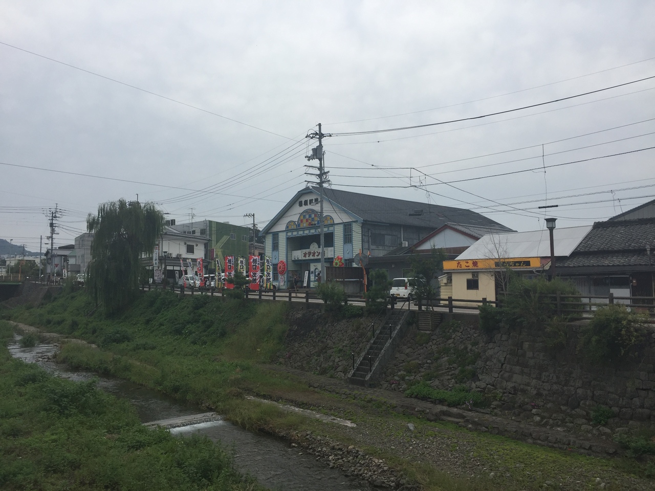 ガイドブックにはまちなみ見学の起点みたいなことを書いてあるが、まちなみからは外れていることに注意。橋を渡ってからがまちなみ。この日はなんとか一座が来ていて、役者さんが総出でお出迎え。ばあちゃんたちが次々とやってきていた。