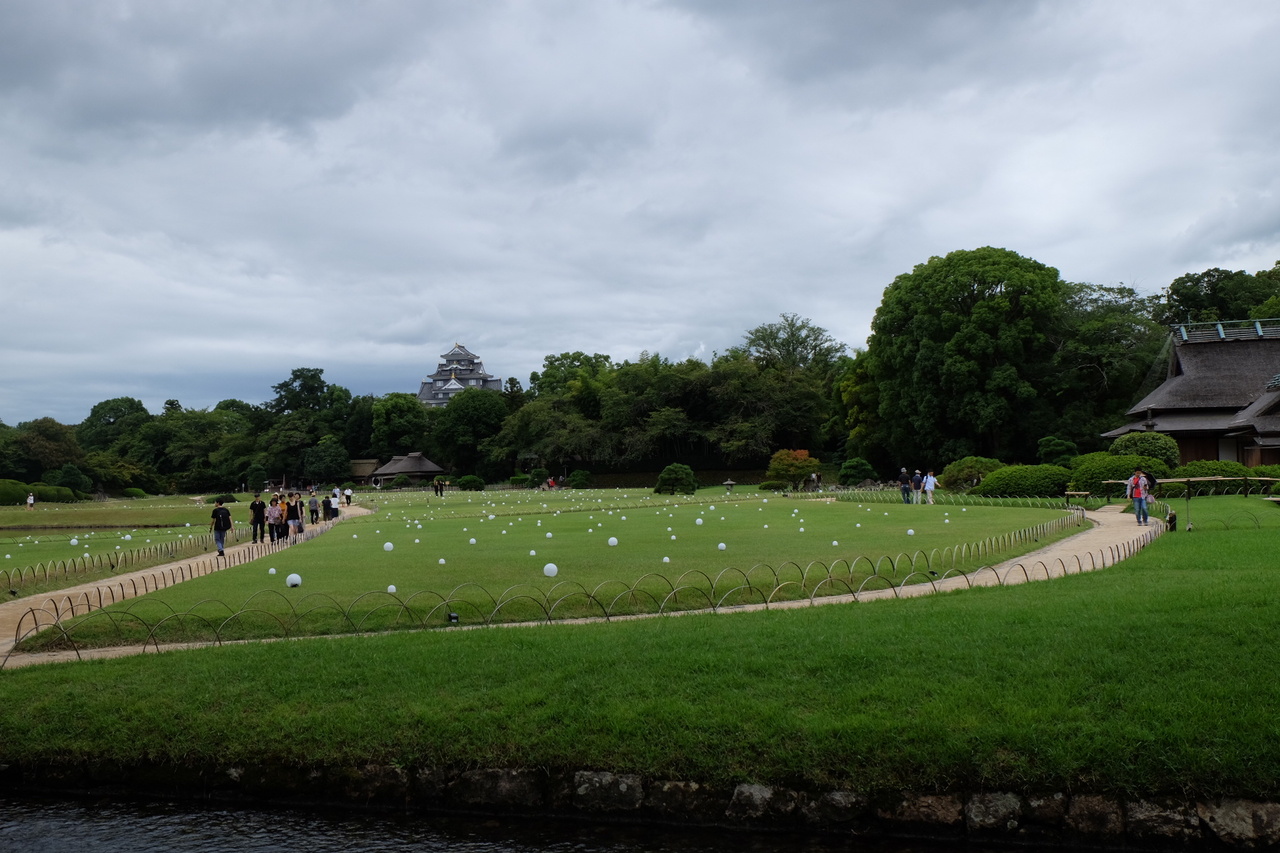 日本三大名園のひとつ、岡山後楽園。すぐ近くに岡山城があり、城に行った後こちらを訪れました。入り口から入った後、周りが開けると、庭園の奥にお城が望めて、とてもきれいでした。自然はもちろんすばらしいですし、鶴がいたり少し休むことができる建物などもあって、楽しく散策できます。