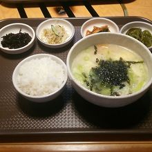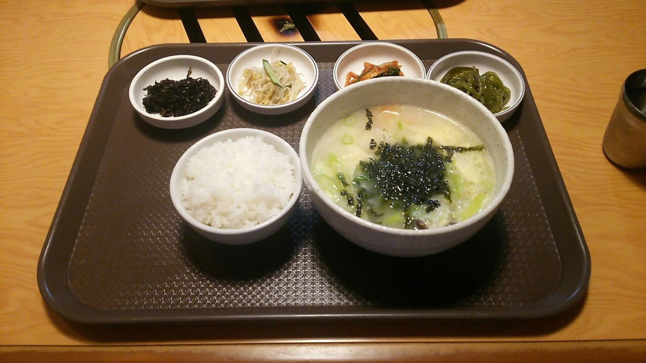 頂いたのはトックの定食。優しいお味のスープと、もちもちしたトックが美味しかったです。