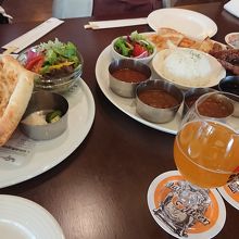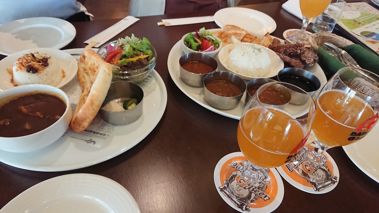 夏カレーセット、カレーナンセット、地鶏のグリルなどた頼みシェアして満腹でした。