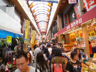 話題の黒門市場を見学すると、そこはアジア系の観光客で満員オシクラ饅頭の状態です。きれいな服装で行くと食べ歩いているアジア系の方たいの食べ物で汚されてしまいますよ。決して白い服装は避けたほうが賢明ですよ。ザワザワして面白い。私は好きです。