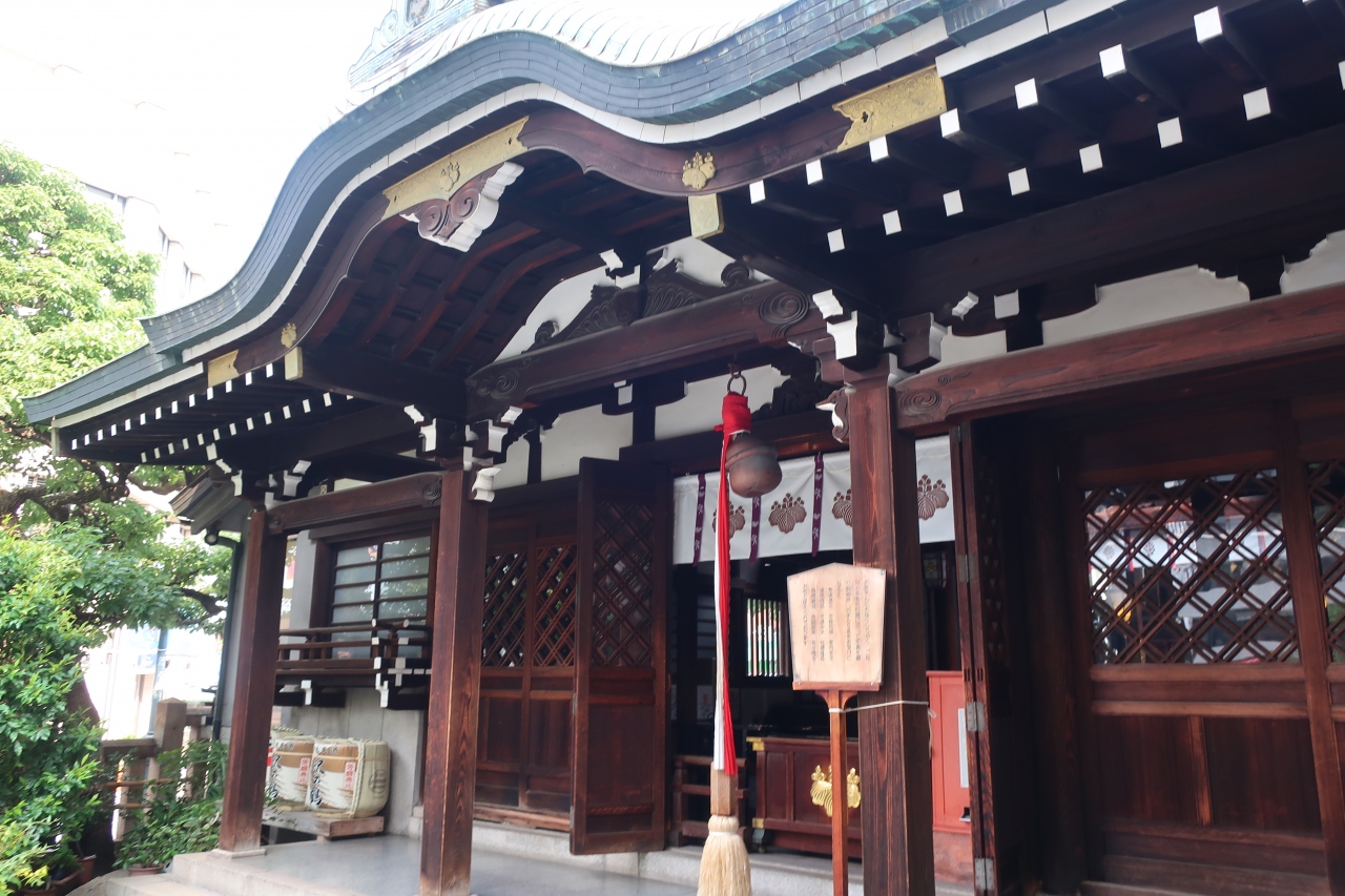 神戸一の繁華街、三宮の中心地、大丸神戸店の目の前にある神社です。湍津姫命を祀る神社で、かつては西国街道に面していたそうです。この地は岡山藩兵と外国兵が衝突したことで知られる神戸事件のあった場所であり、境内の手水舎の近くには大砲があり、石碑、説明版が設置されています。繁華街の一等地にある神社と言う以外は普通の神社です。