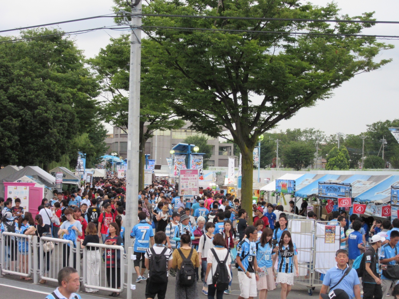 それでもサッカー開催日は多くの人で賑わうので、仮設テントを多く立てて売店等を設けていて、フロンターレグッズは勿論、美味しそうな食べ物がたくさん売っていました。