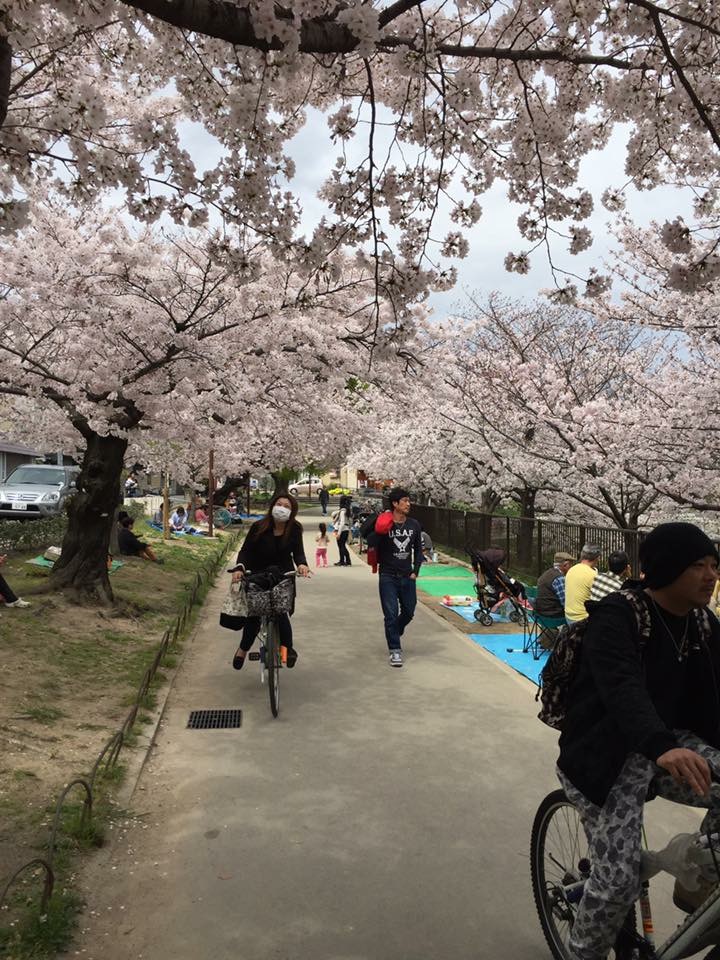 昔から池の周りに桜並木があり、野外劇場や貸しボート屋などがあり、市民憩いの場であった万代池は、今では芝居小屋も貸しボート屋も無くなったが、整備されて1周720mのランニングコースや児童公園ができ、休日は家族連れで賑わっている。4が初旬は池の周りの桜が満開で、両側の桜が散歩道を覆いさながら桜のトンネルとなり、花見客で賑わう。