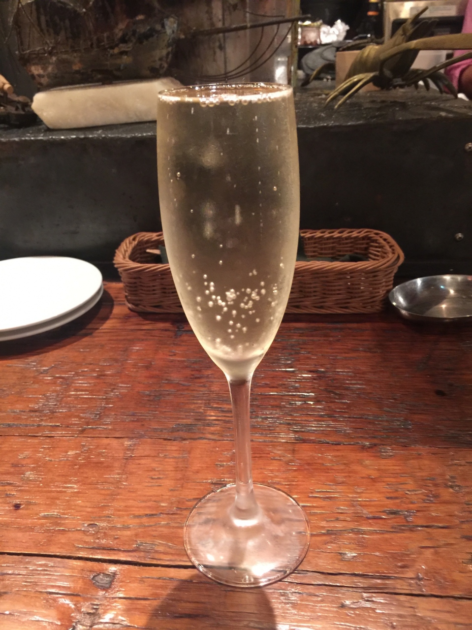 スパークリングワインはなみなみと表面張力まで、、、399円!