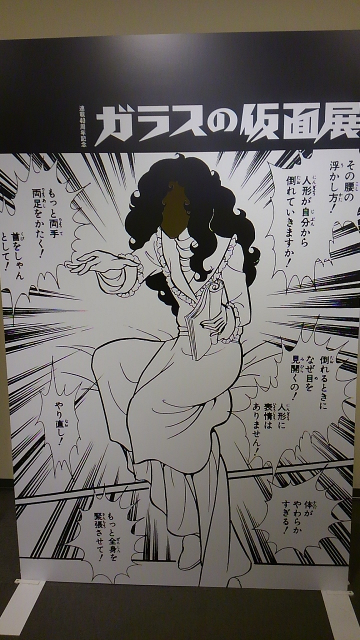 昨年 連載40周年を迎え、名場面の数々を原画とカラーイラストで紹介するガラスの仮面展が松屋銀座のイベントスクエアで行われていました。