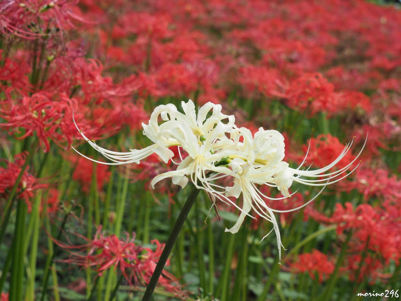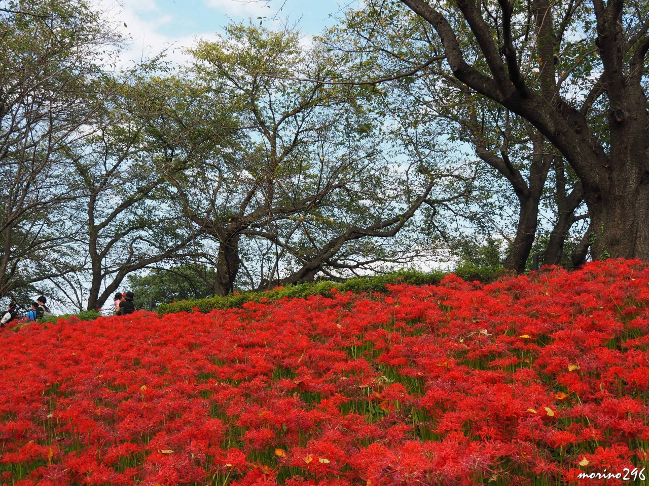 - 350万本とも言われる曼殊沙華が権現堂堤を真っ赤に染めます。