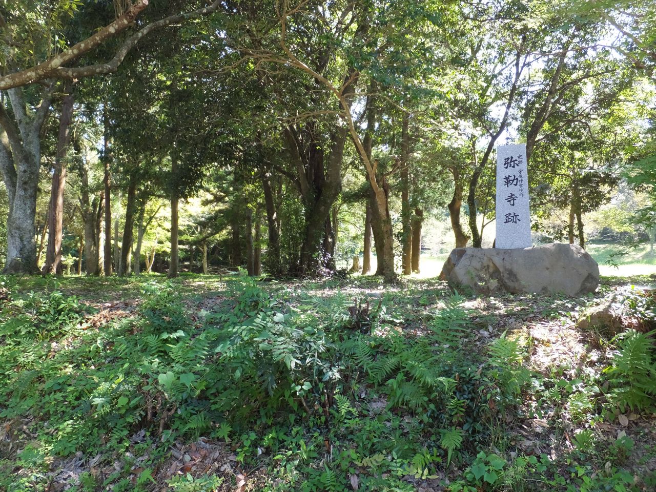 まさに来てみなければ分からなかったのですが、明治になるまで、宇佐神宮の参道の右側には大きなお寺があったのだそうです。それがこの弥勒寺です。昔は仏も神様も同じようなものだったようで、この弥勒寺も「神宮寺跡」ということもあるようです。現在は石碑が1本とちょっとだけ礎石が残る空き地があるだけです。おそらく明治の神仏分離のとき、宇佐神宮に場所を譲って消えたのではないか、と感じました。