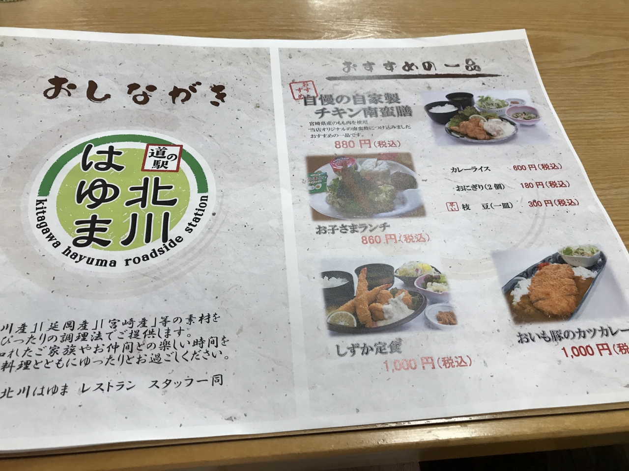 レストランは北川産、延岡産、宮崎産の素材にこだわっているようです。
