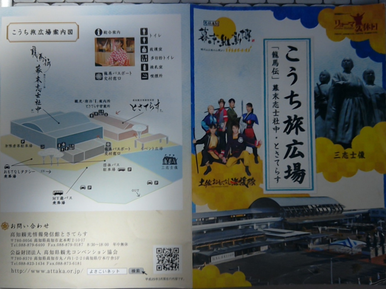 以前訪れた時はちょうどNHKで龍馬伝がほうえいされている頃で観光の名所になっていました。今回は三志士像を記念撮影し広場内にある「とさてらす」や「龍馬伝・幕末志士社中」等を見て回りました。