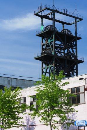 集落そのものが消滅してしまった石炭の街がこの空知地方にはいくつもあって、そうした場所では炭鉱遺構が草深い山の中に骸を晒しているものですが、この赤平はマチ自体が消滅したわけではなく、このため炭鉱の面影を比較的保存状況も良く辿ることができます。旧住友赤平の立坑櫓もそうした遺構の1つで、根室本線の裏手に並行して延びる道路に面して、往時の威容を見せていました。もちろん中に入ることはできませんけれど、外観だけでも十分に重厚長大の時代の迫力が感じられます。
