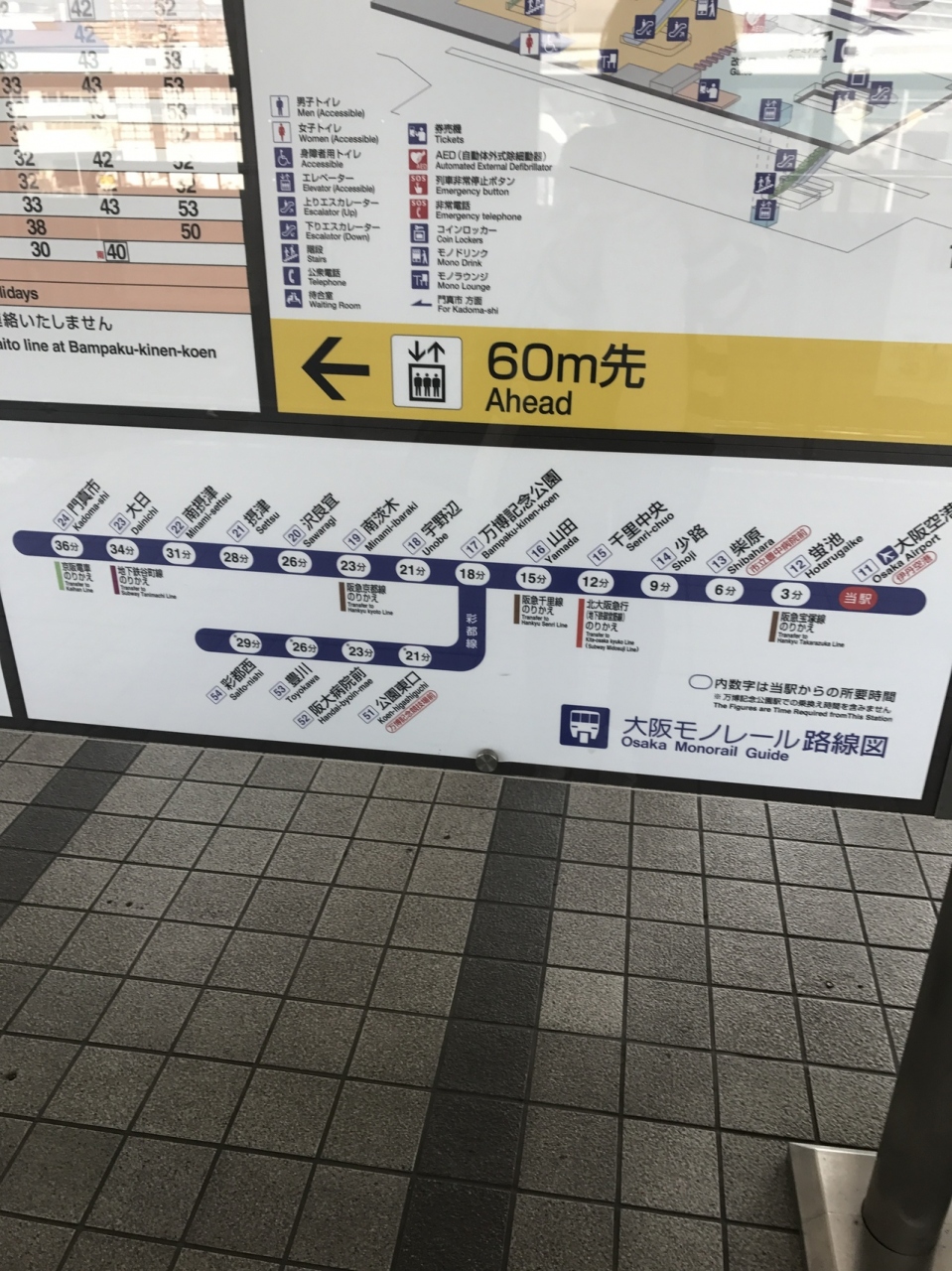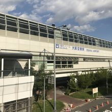 伊丹空港から直結のモノレールです。10分に一本ぐらいですが ミニトランクを持った人で混んでいます。風通しは良く 高い建物もないので空港の近くだという事を忘れる程のんびりした空間です。JAL側の北ターミナルから近いのでANAの人は少々歩きます。