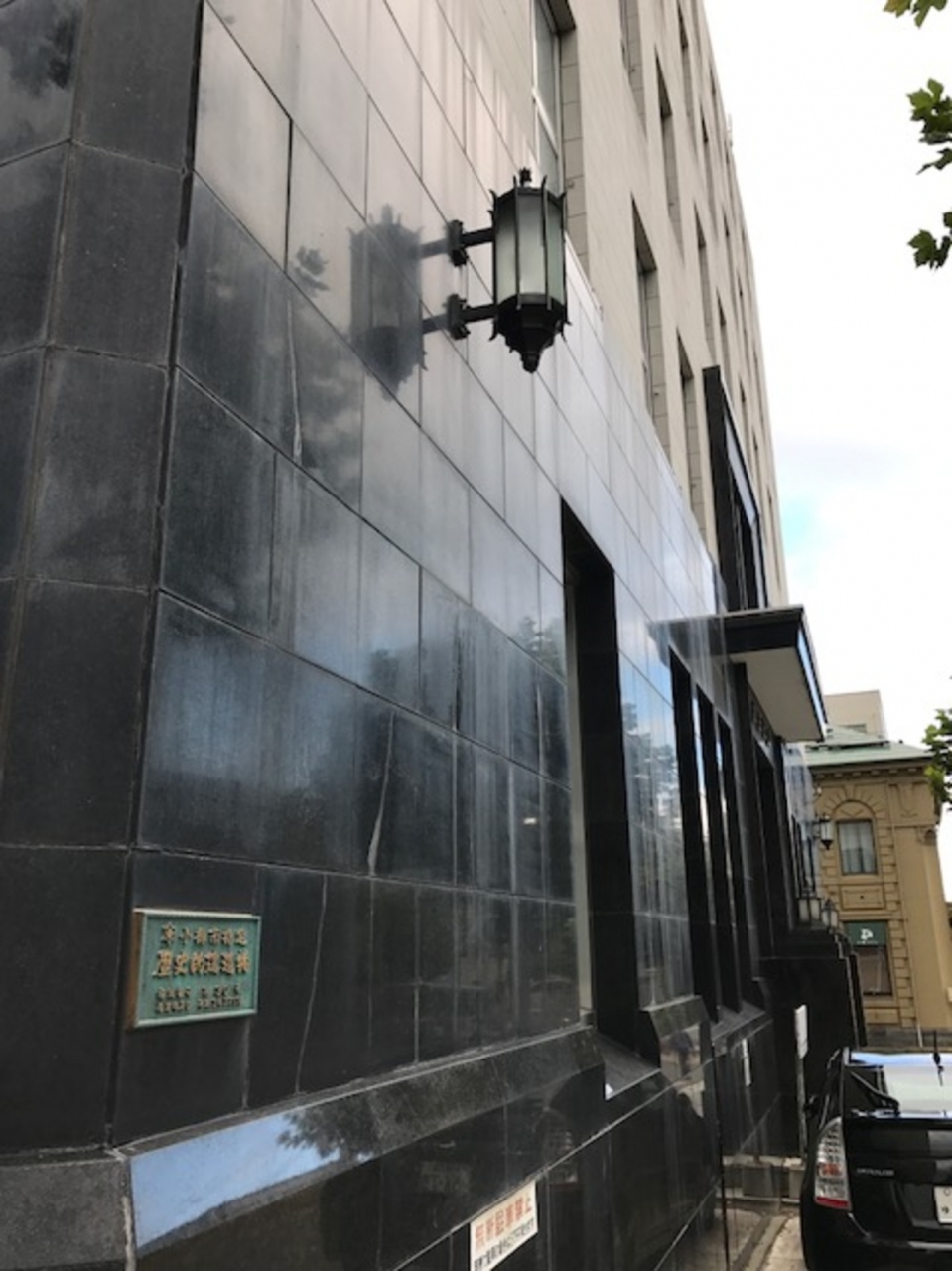 小樽駅から少し歩くと指定歴史的建築物が点在する場所に出ます。この旧三井物産小樽支店は黒い御影石と白いタイルのコントラストが美しいビルです。但し外観がスクエアで現代的なので紫の案内板がなければ見逃すところでした。